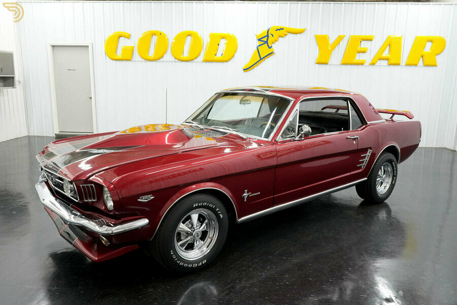 Pinze posteriori a singolo pistone. Pinze anteriori a 4 pistoncini. Scatola di trasmissione in alluminio alettata B&M. Silenziatori stile turbo. Doppio scarico. Collettori a tubo lungo. Coppa dell'olio cromata. Ammortizzatori posteriori. Ammortizzatori anteriori KYB Gas-A-Just. Barra di oscillazione anteriore. Console centrale. Cric & Chiave per bulloni. Ruota di scorta completa. Tappetino del bagagliaio. Altoparlanti posteriori Alpine. Coperchi valvole in alluminio lucidato Ford Racing. Indicatore di temperatura SunPro. Voltmetro SunPro. Manometro pressione olio SunPro. Alpine AM/FM/CD/AUX/USB/Bluetooth. Cambio automatico a pavimento B&M. Cinture di sicurezza. Sedile posteriore a panchina. Sedili anteriori a secchiello. Interni in vinile nero Deluxe. Pannelli porta neri. Cruscotto nero. Headliner nero. Moquette nera. Tachimetro da 140 miglia orarie. Perni del cofano. Antenna montata sul parafango. Specchietti retrovisori lato guida e passeggero. Modanature rocker luminose. Modanature lucide del labbro della ruota. Fari fendinebbia GT. Griglia GT. Finestrini luminosi. Paraurti anteriori e posteriori cromati. Spoiler posteriore del bagagliaio. Paraurti anteriore. Strisce nere e argento. Esterno rosso. Ventola di raffreddamento a 6 lame. Radiatore in alluminio. Accensione di serie. Pompa carburante meccanica. Bobina MSD Blaster 2. Distributore di serie. Carter 500cfm 4 Barrel Carburetor. Strozzatura elettrica. Presa d'aria in alluminio fuso Weiand. Rapporto di trasmissione 3,55. Posteriore POSI. Ford 8 pollici posteriore. Pneumatici BFGoodrich Radial TA. Pneumatici posteriori: 245/60/14. Pneumatici anteriori: 205/70/14. Ruote da 14 pollici. Freni a disco a 4 ruote. Freni a disco posteriori. Freni a disco anteriori. Freni elettrici. Servosterzo. Cambio automatico C4. Motore Ford Small Block da 289 cc.