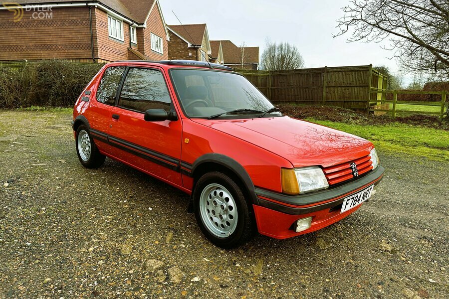 motodrome offre in vendita questa Peugeot 205 GTi 1.6 Phase 1.5 del 1988, superbamente collaudata e con un basso chilometraggio, rifinita in rosso ciliegia con finiture sportive in tessuto nero.
